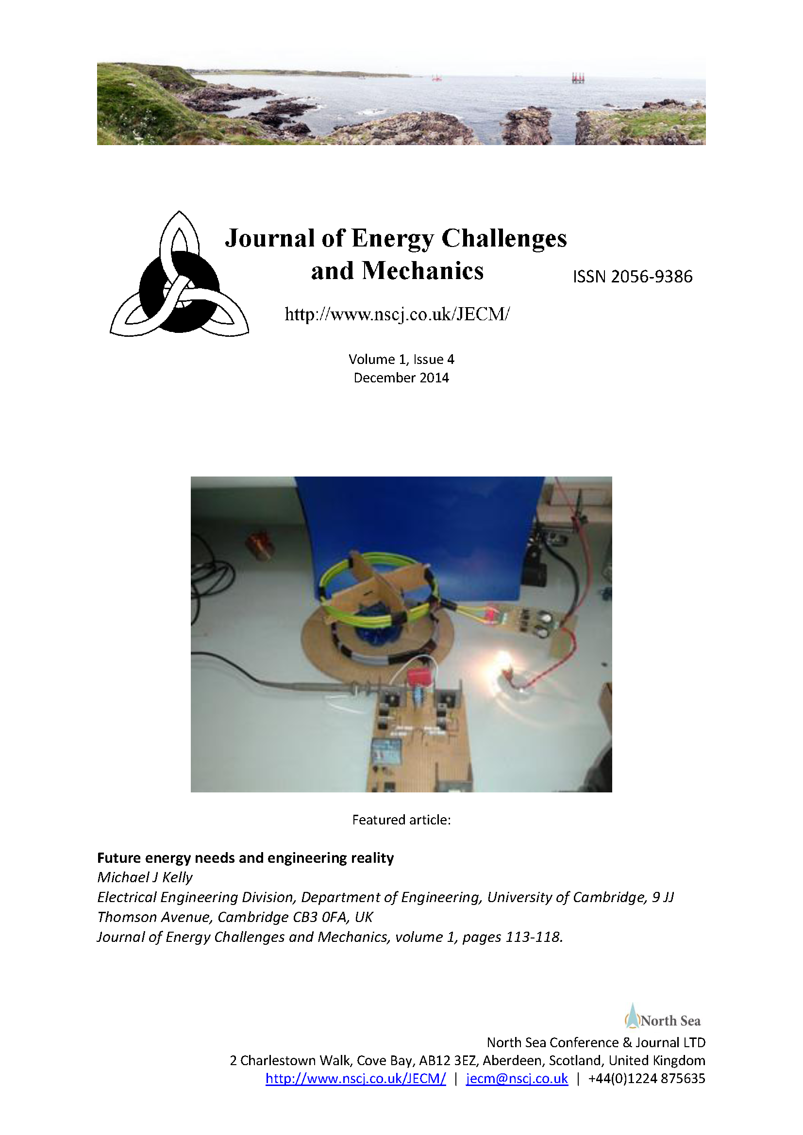 Since James Watt, a Scottish inventor, improved efficiency of the steam engine, human civilization relies more and more on a steady supply of energy. Today we are at a transitional age. On the one hand, we see technology advances in the exploration and development of oil and gas, a depleting resource; we see growth in handling aging and decommissioning. On the other hand, we see ideas and plans for new energy infrastructure. This journal is about energy challenges and the underlying mechanics, involving multiple disciplines in science, technology, management and policy-making. Mechanics, fundamentally, is about force and the related behaviours, where force is about relationships, including those physical, human and social. For mechanics, the journal covers interactive boundaries with many other disciplines. For energy, topics include both fossil fuels and many different forms of renewable energy; also, issues related to energy economy, energy policy, efficiency, safety, environment and ecology will also be covered.